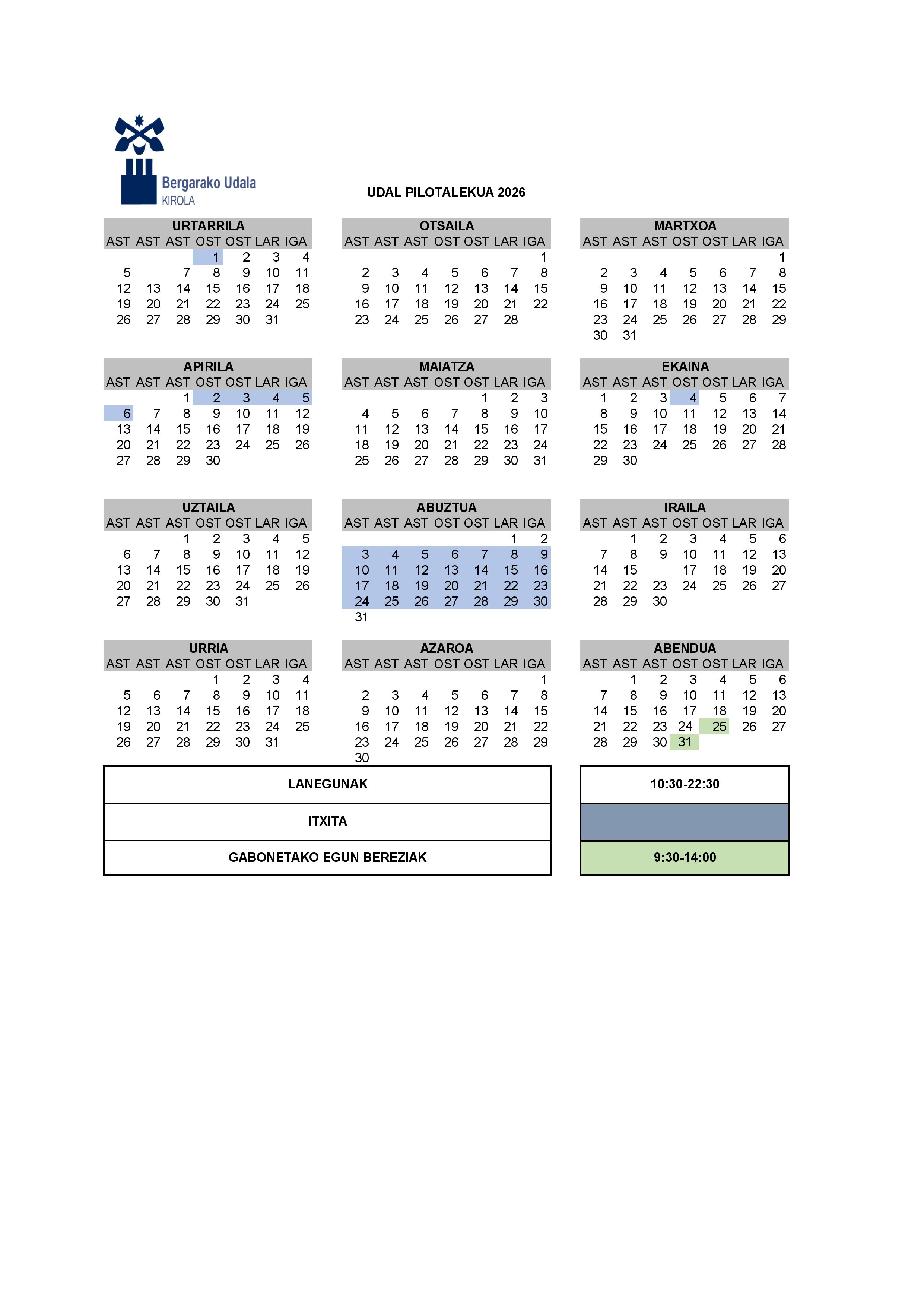 UDAL PILOTALEKUA 2025 ETA 2026KO EGUTEGIA