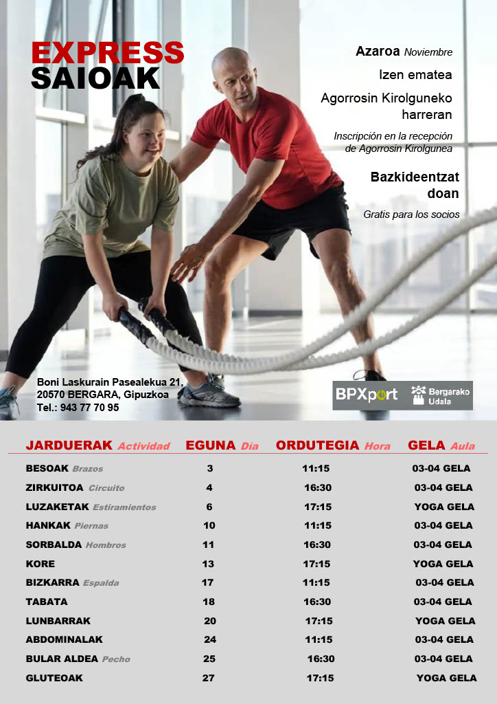 Helburua: Gimnasioko monitoreak 30 minutuko saioak eskaintzen ditu helburu zehatzak lantzeko.