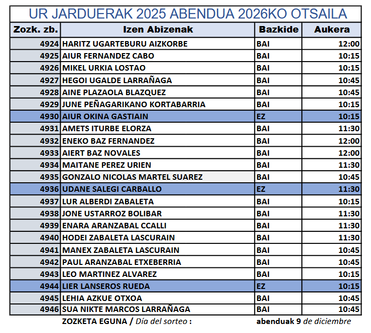 IKASTAROA ABENDUAN HASIKO DA ETA OTSAILEAN AMAITUKO DA