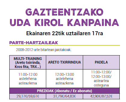 GAZTEENTZAKO UDA KIROL KANPAINA 2026